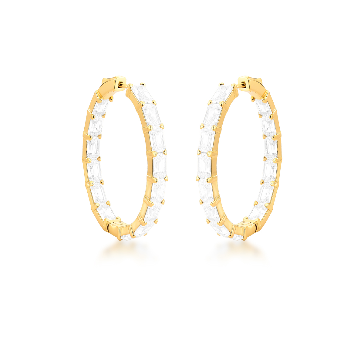 brinco argola pedra oval frente interno retangular verso vazado 6x4mm / 41x32x4mm ban. dourado /inco