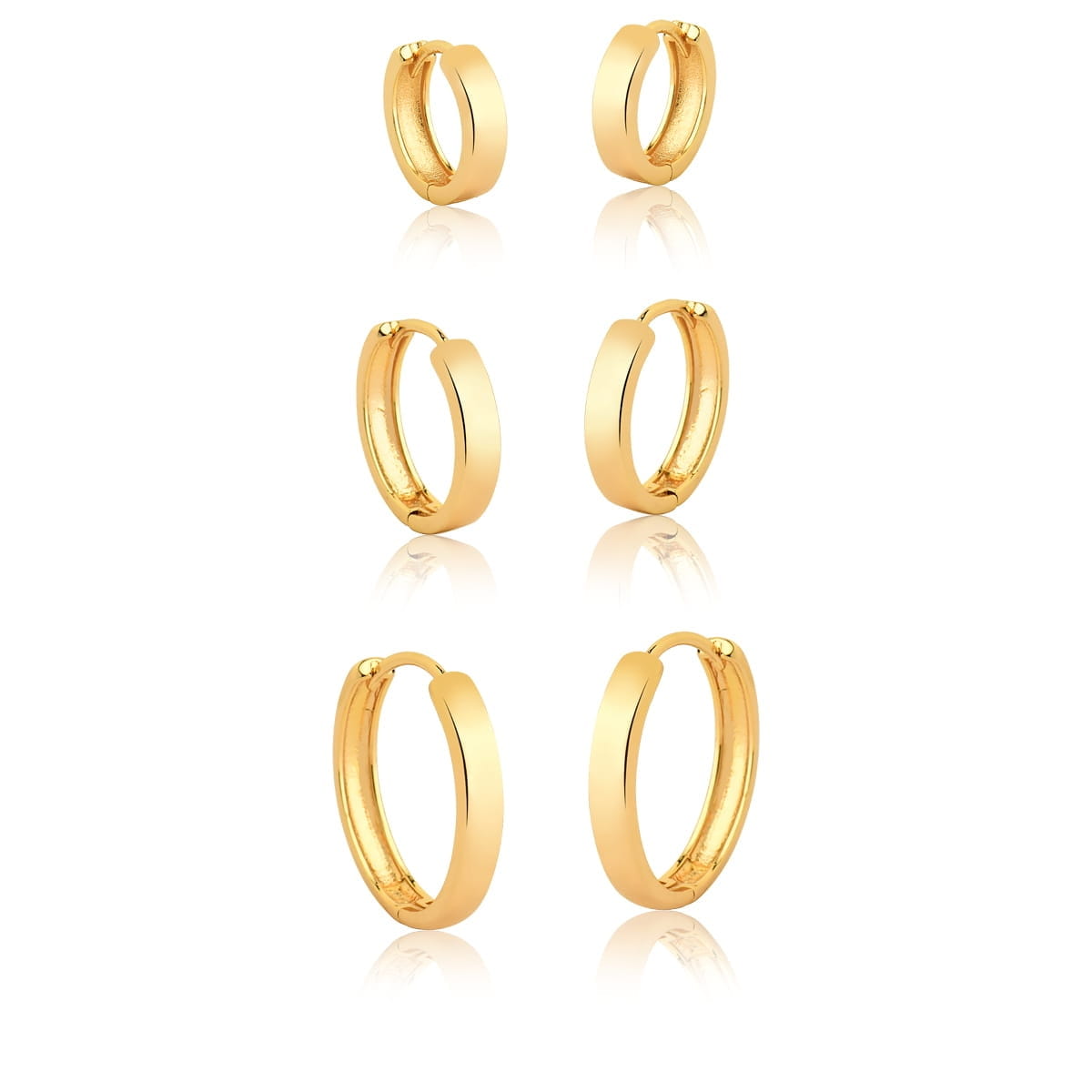 brinco trio argola liso redondo 15x4/18x4/20x4mm ban. dourado