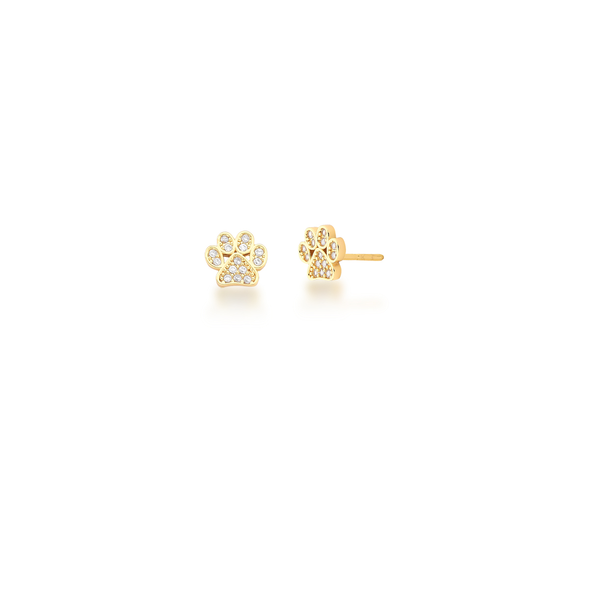 brinco pequeno zirconia pata de cachorro 8x9x2mm ban. dourado /incolor