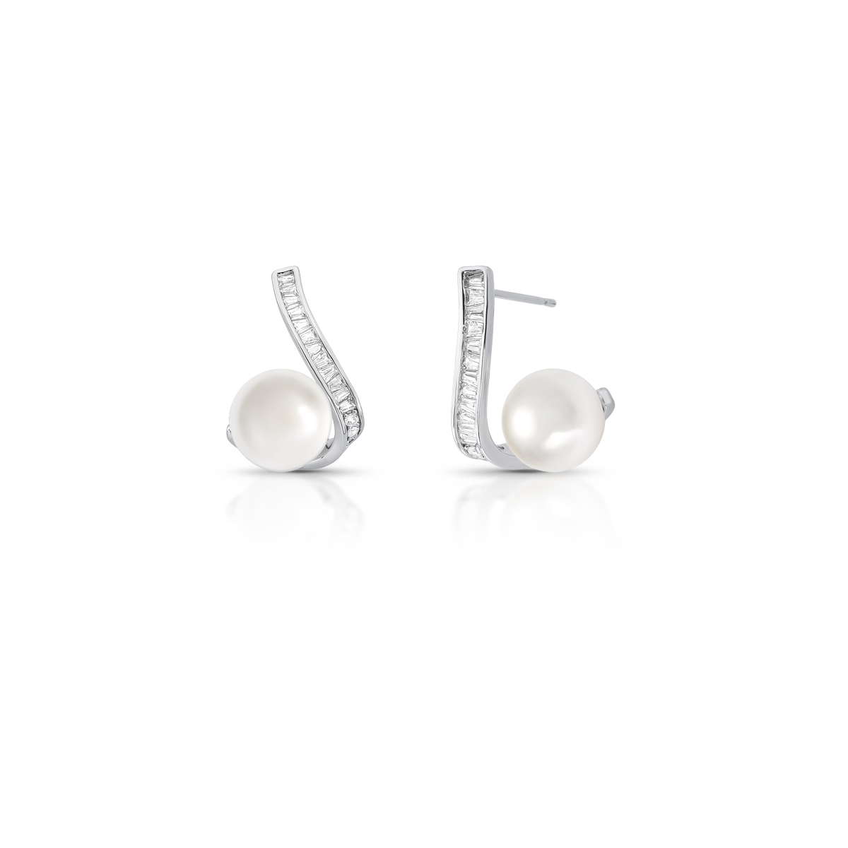 brinco medio pedra baguete + perola shell curvo 1 coluna 10mm 21x14 ban. a rodio /branco