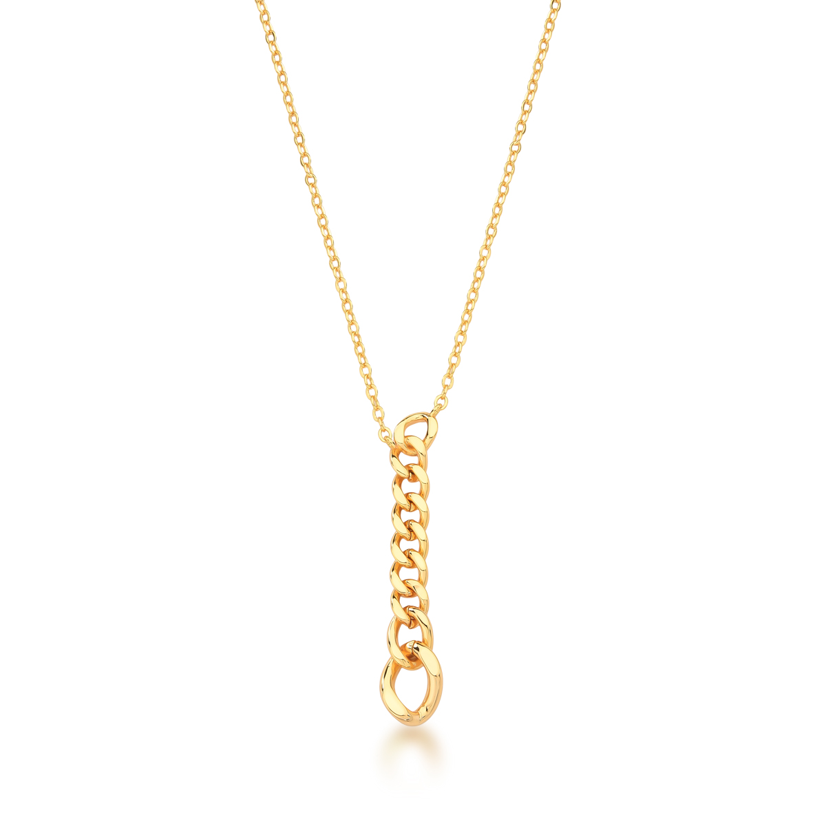 CORRENTE COM PINGENTE ELO GRUMET PENDULO 8MM BANHADO A OURO. CORRENTE 45CM.