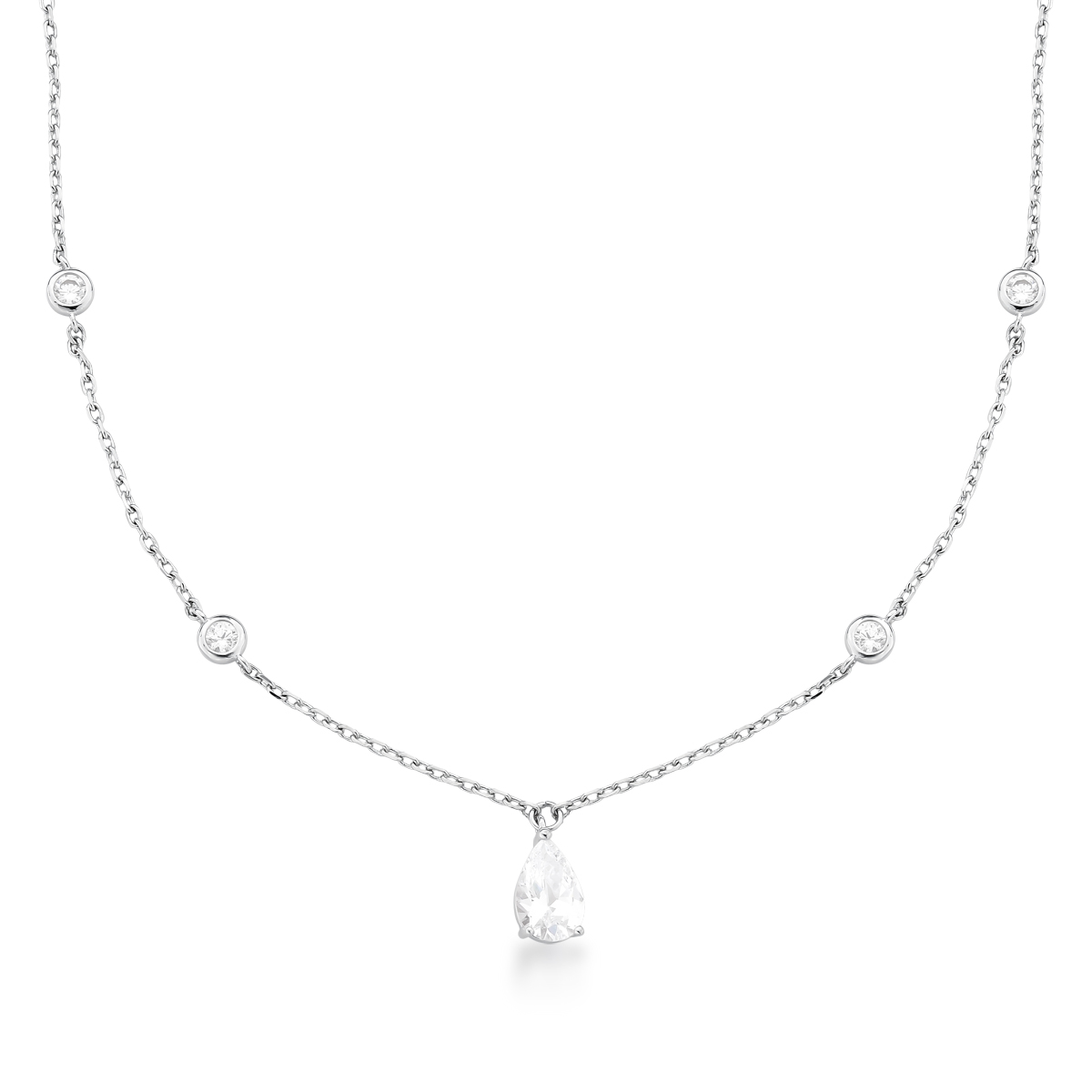 colar ban. a rodio pedra branca pendulo disperso redondo/gota 45+ 5cm ban. a rodio