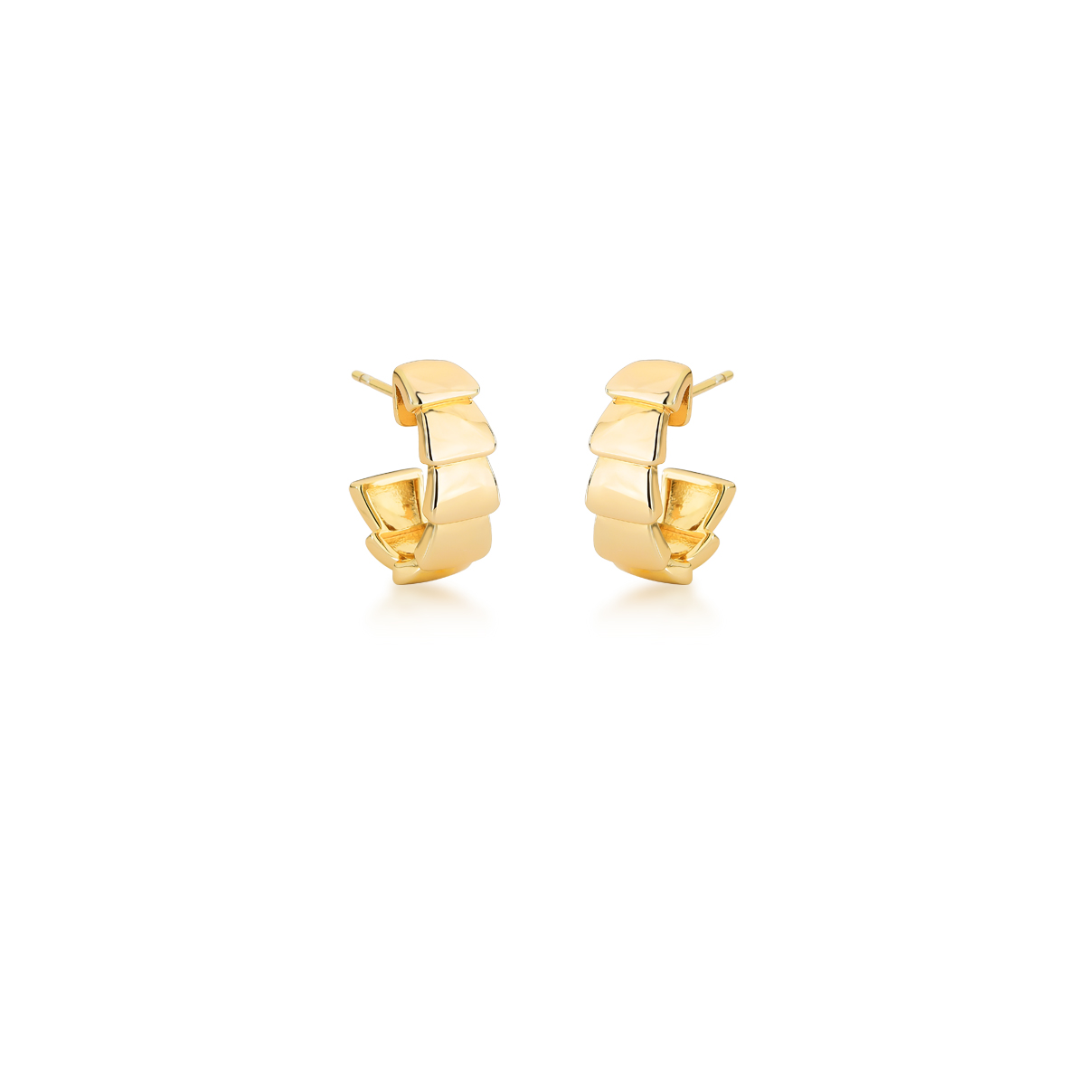 brinco meia argola liso trabalhado retangular19x7mm ban. dourado