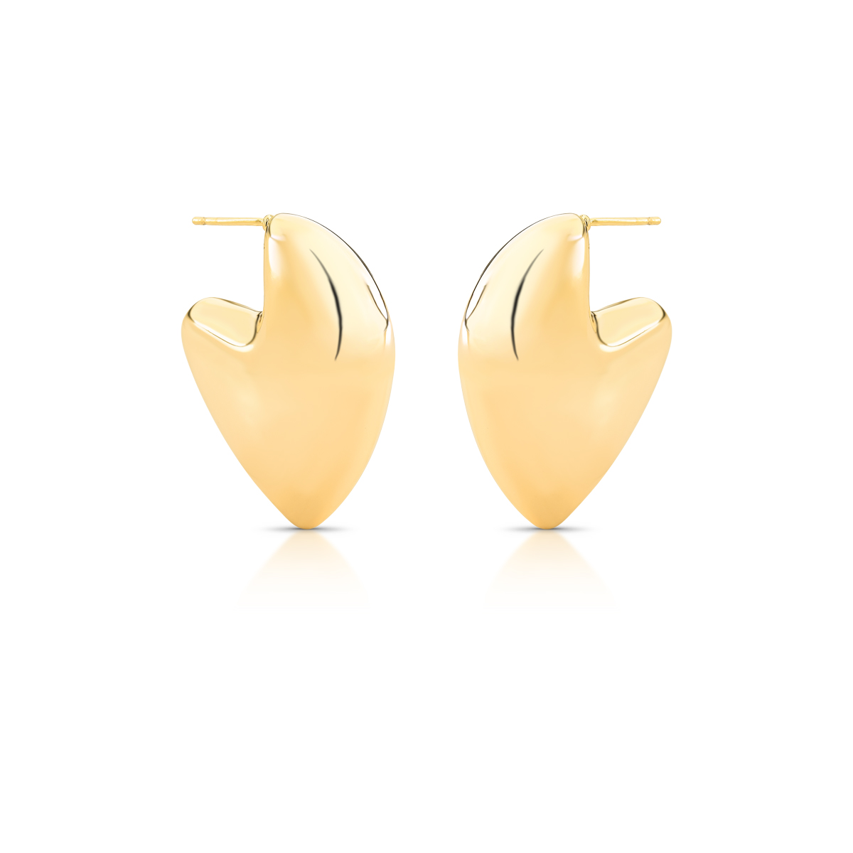 brinco meia argola liso coracao abaulado curvo 33x30x9mm ban. dourado