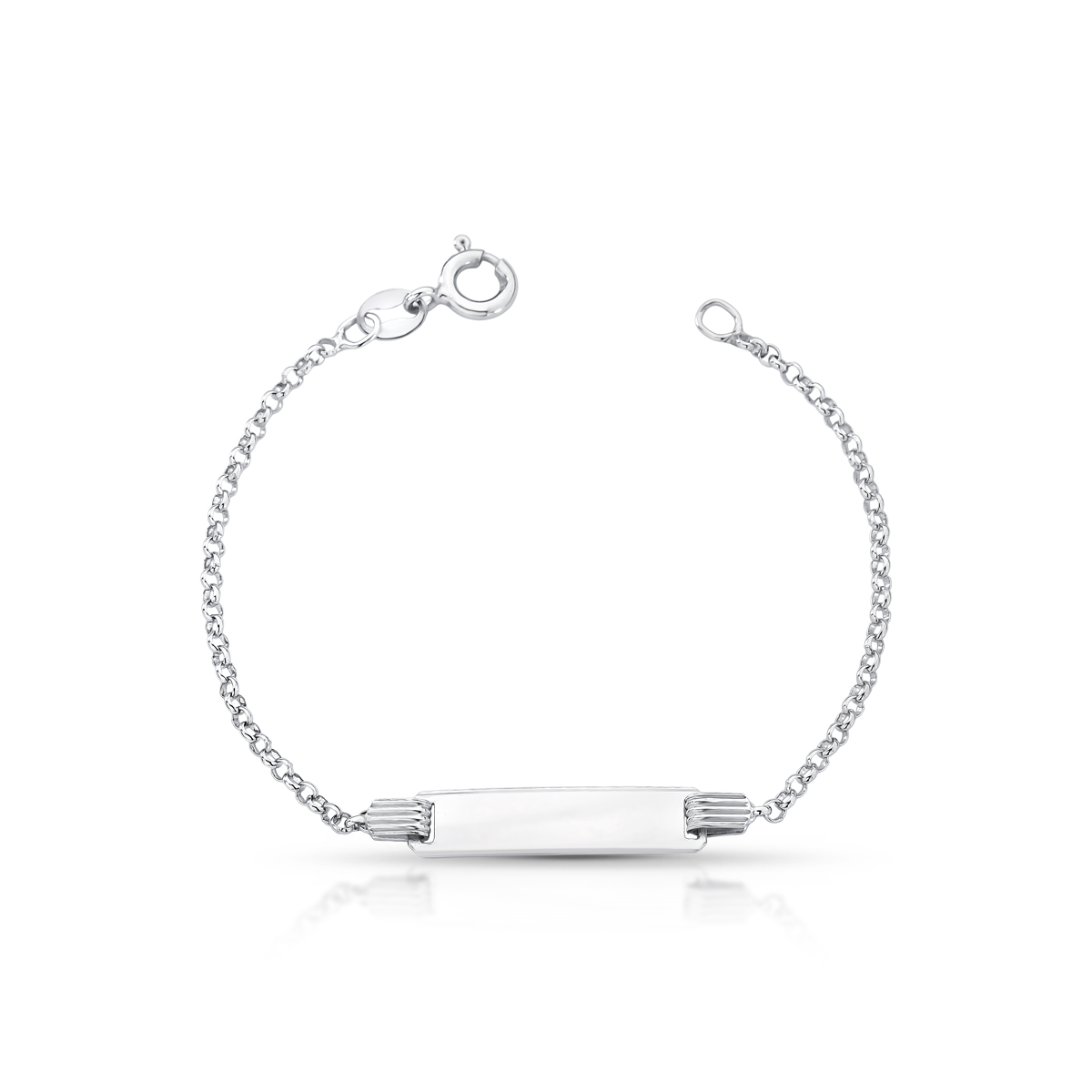 pulseira maleavel liso elo portugues placa trabalhado 5mm (miss) prateado c/ ban. de rodio /tam. 14